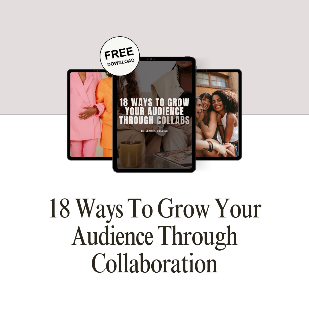 This free guide walks you through 18 simple, strategic ways to grow your email list and visibility by tapping into other people’s audiences. Whether you’re brand new to collabs or looking to expand your reach further, this guide will help you attract perfect-fit clients.