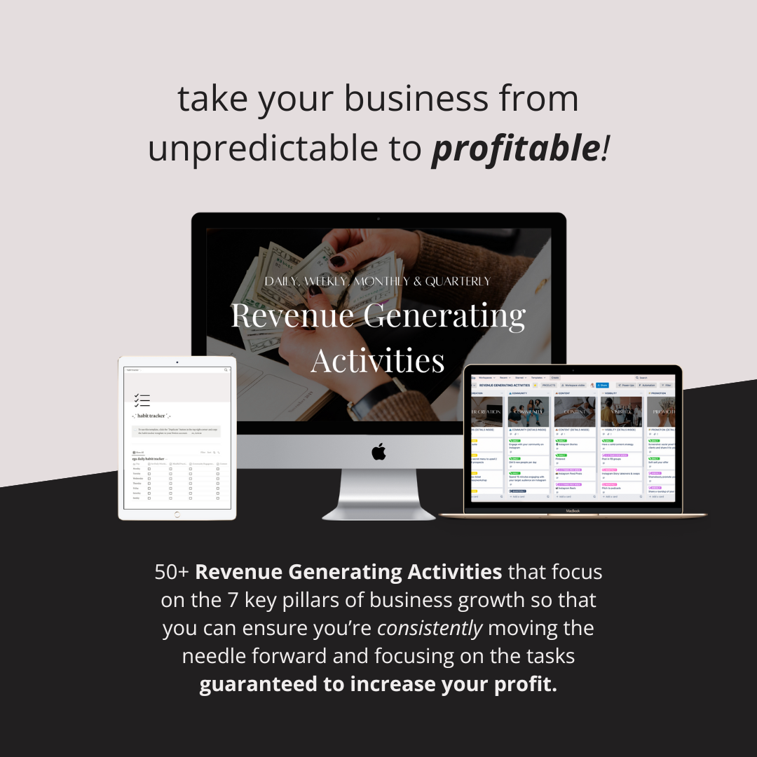 A Trello dashboard packed with 50+ revenue-generating activities focusing on the 7 key pillars of business growth to help you move the needle forward. Prioritise the tasks that actually grow your income, & stop wasting time on things that don’t.